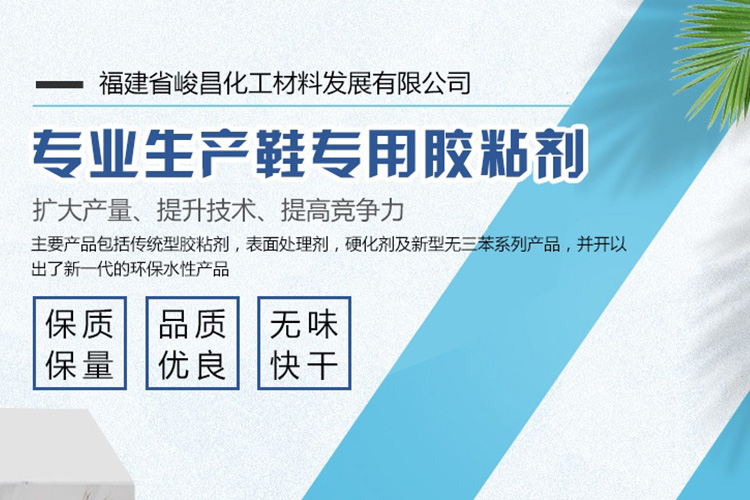 福建省峻昌化工材料發(fā)展有限公司總部設(shè)在中國鞋鄉(xiāng)——晉江。為更好、更方便服務(wù)廣大客戶,我司在廣東江門及福建均設(shè)有先進的PU膠生產(chǎn)基地,歡迎廣大同行前來我司灌裝或批發(fā)銷售。公司是一家中外合資,面向亞太地區(qū)從事研究,生產(chǎn)銷售鞋用粘膠10多年的專業(yè)公司。從國外引進生產(chǎn)能力為數(shù)萬噸的全套先進生產(chǎn),檢驗設(shè)備,與德國Bayer,日本DENKA及美國,西班牙等其它海外公司有著密切的原材料及技術(shù)合作。公司主要產(chǎn)品包括傳統(tǒng)型膠粘劑,表面處理劑,硬化劑及新型無三苯系列產(chǎn)品,并開以出了新一代的環(huán)保水性產(chǎn)品。供應(yīng)國內(nèi)外鞋業(yè),手提箱包及建筑工程單位使用。公司始終保持產(chǎn)品的良好品質(zhì)及專業(yè)特性,并倍受廣大客戶好評。